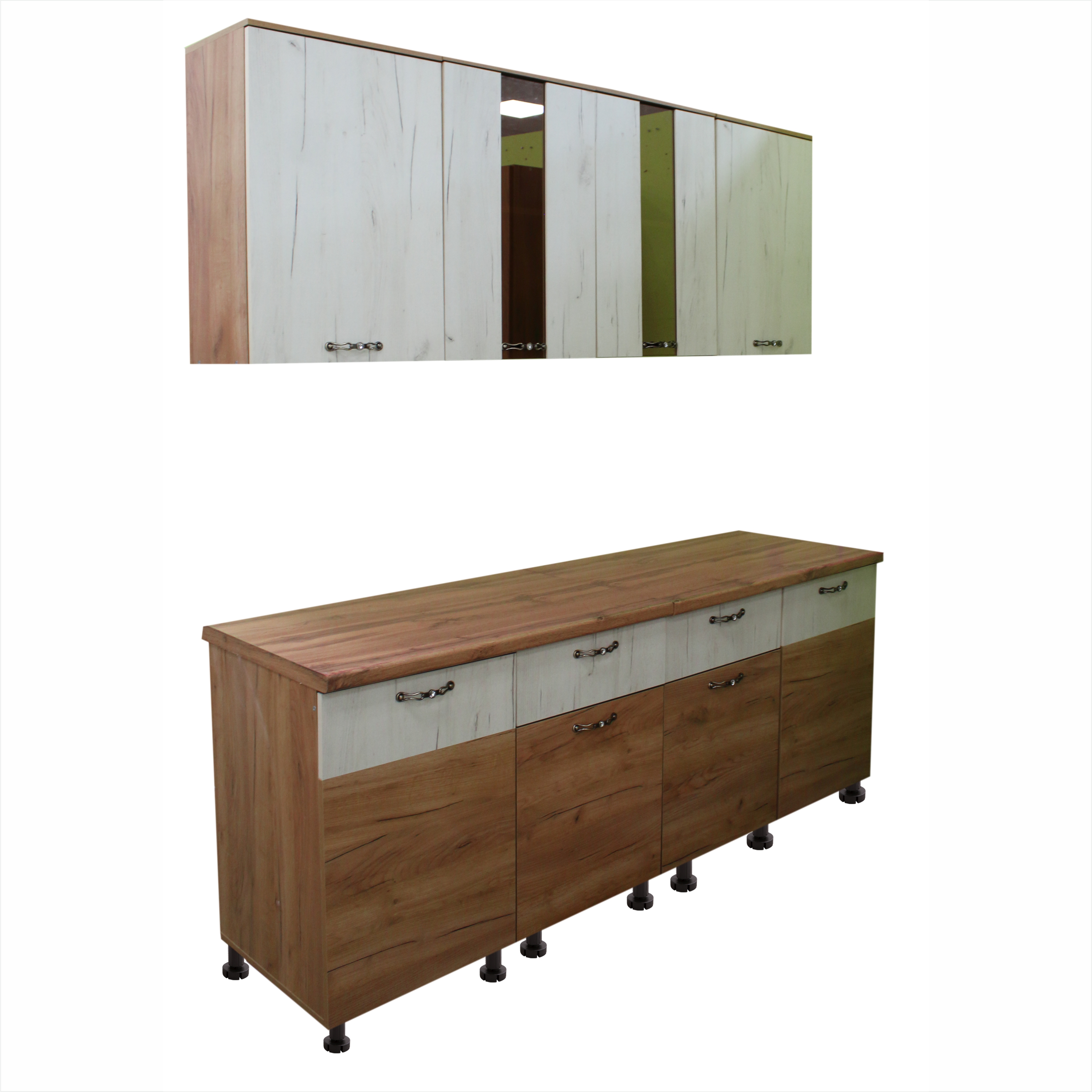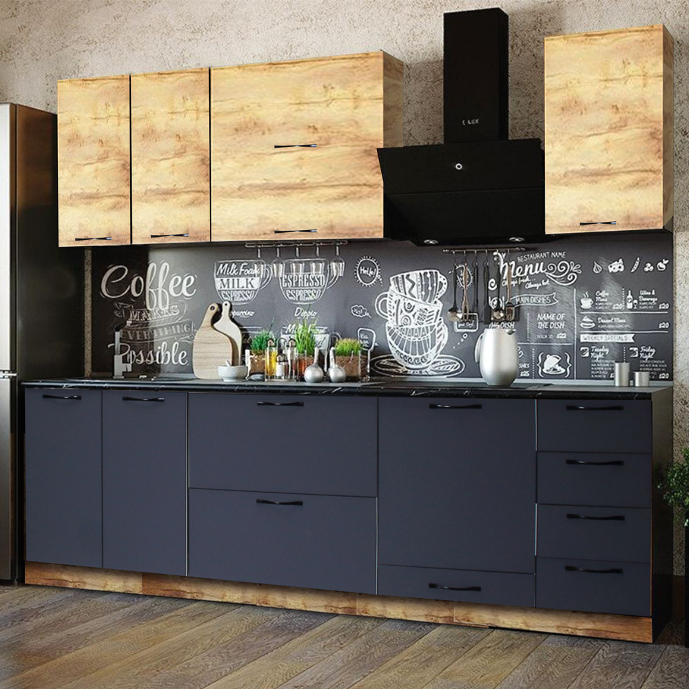 Кухня "Марта" ЛДСП 2м б/м б/с дуб крафт золото + крафт белый (Столешница 38 мм) (без ФП)