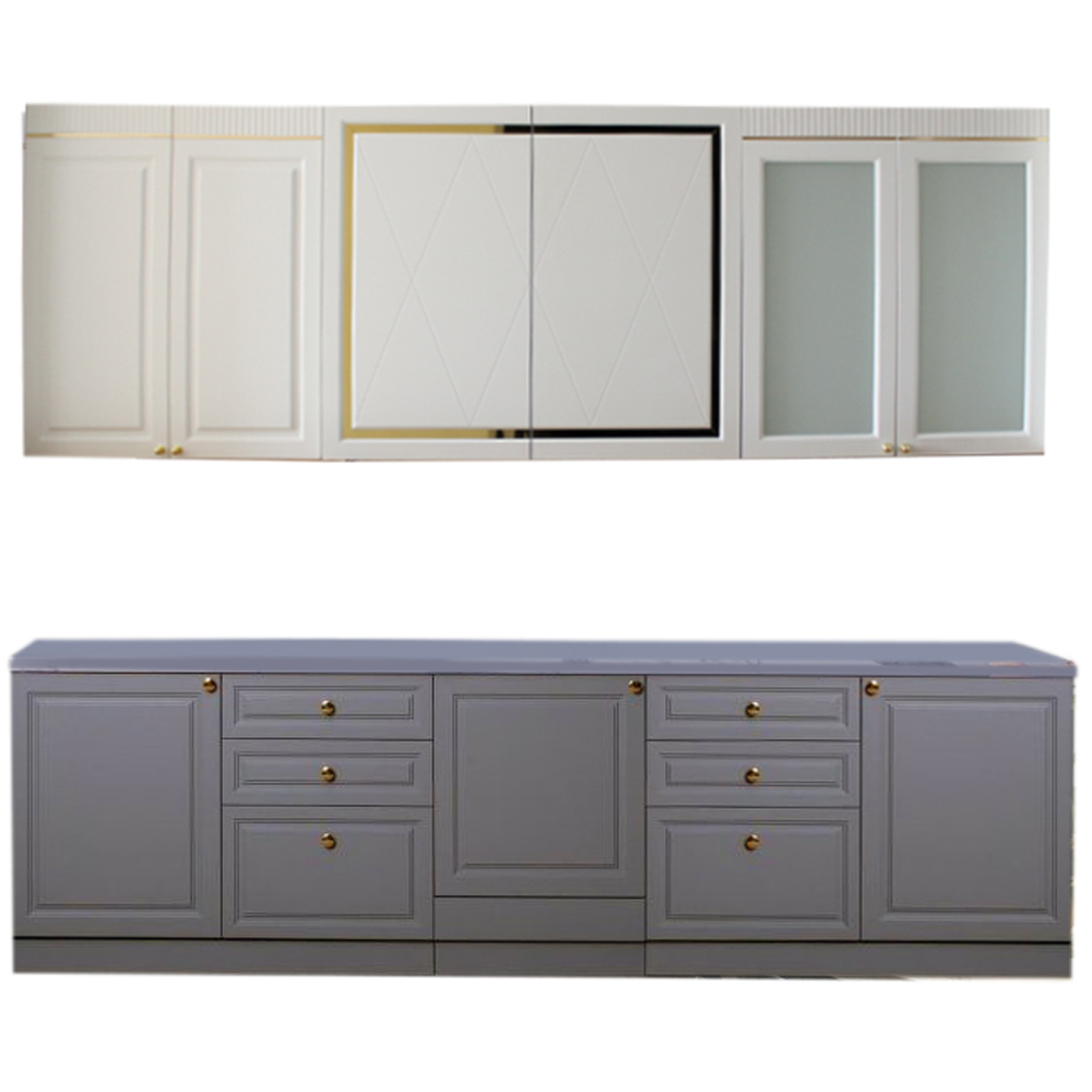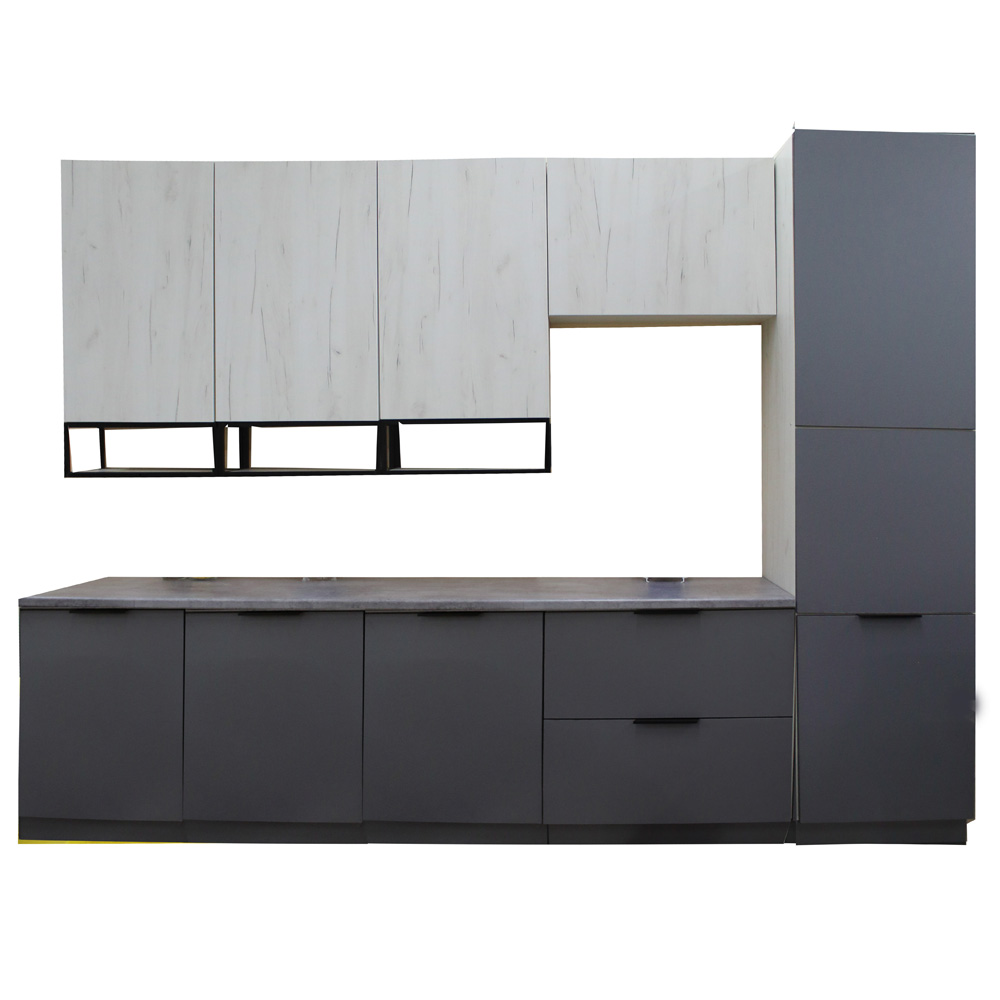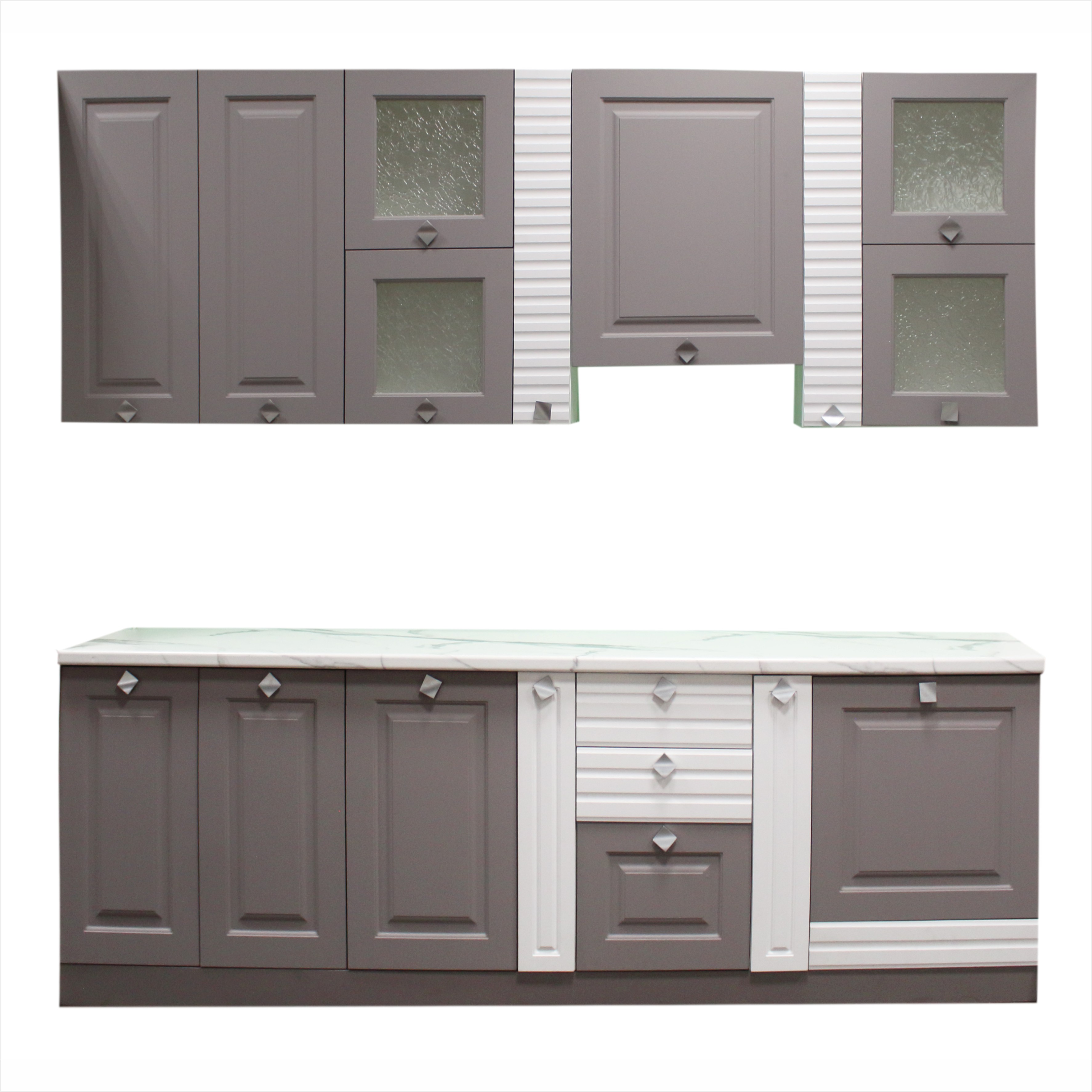 Кухня "Мадрид" МДФ 2,6 (h=2340 м б/м б/с тальк матовый+платина (Столешница 38 мм)