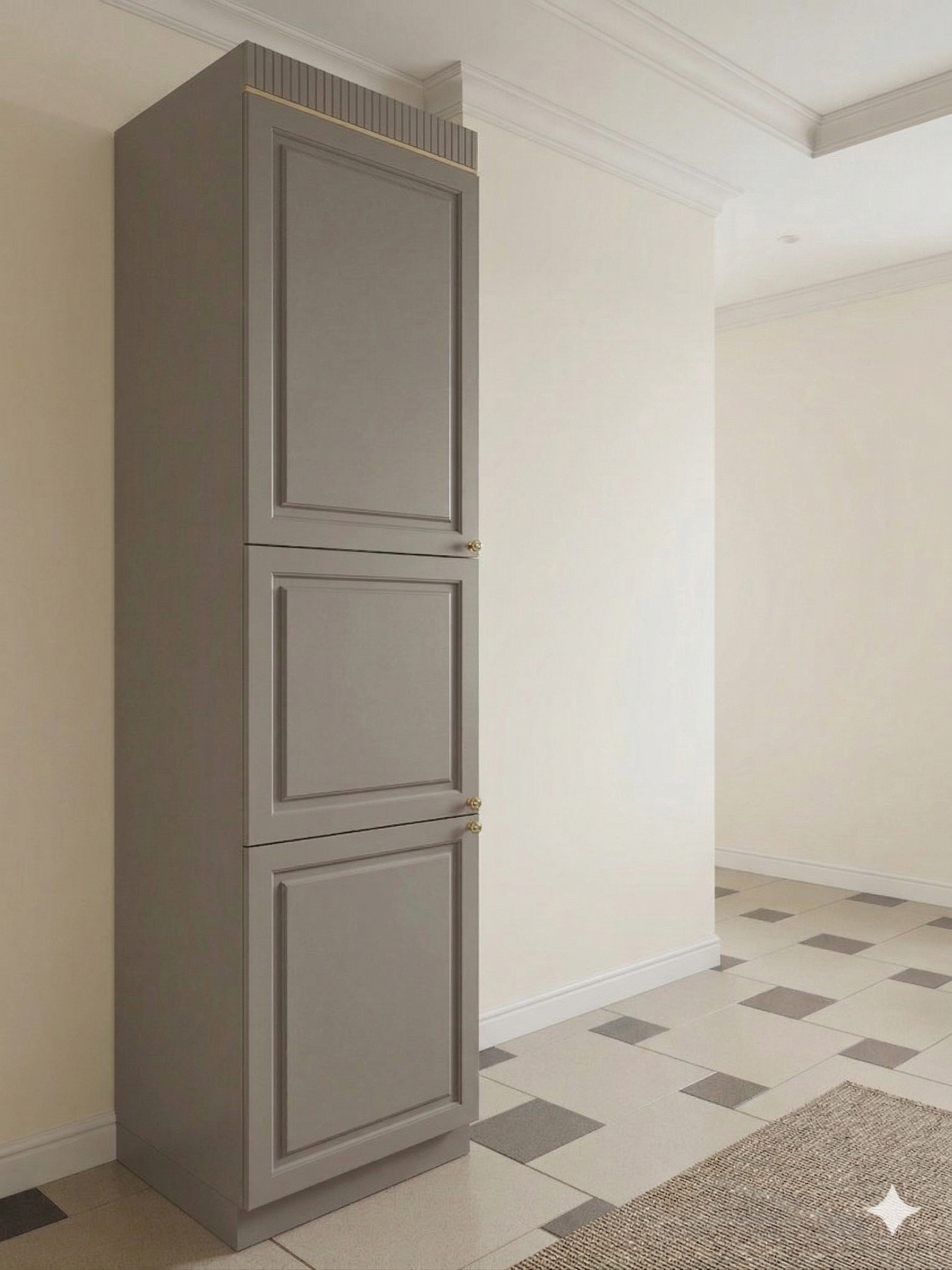 Кухня "Лючия" 600*590*2400 Пенал-витрина платина (с золотым молдингом)