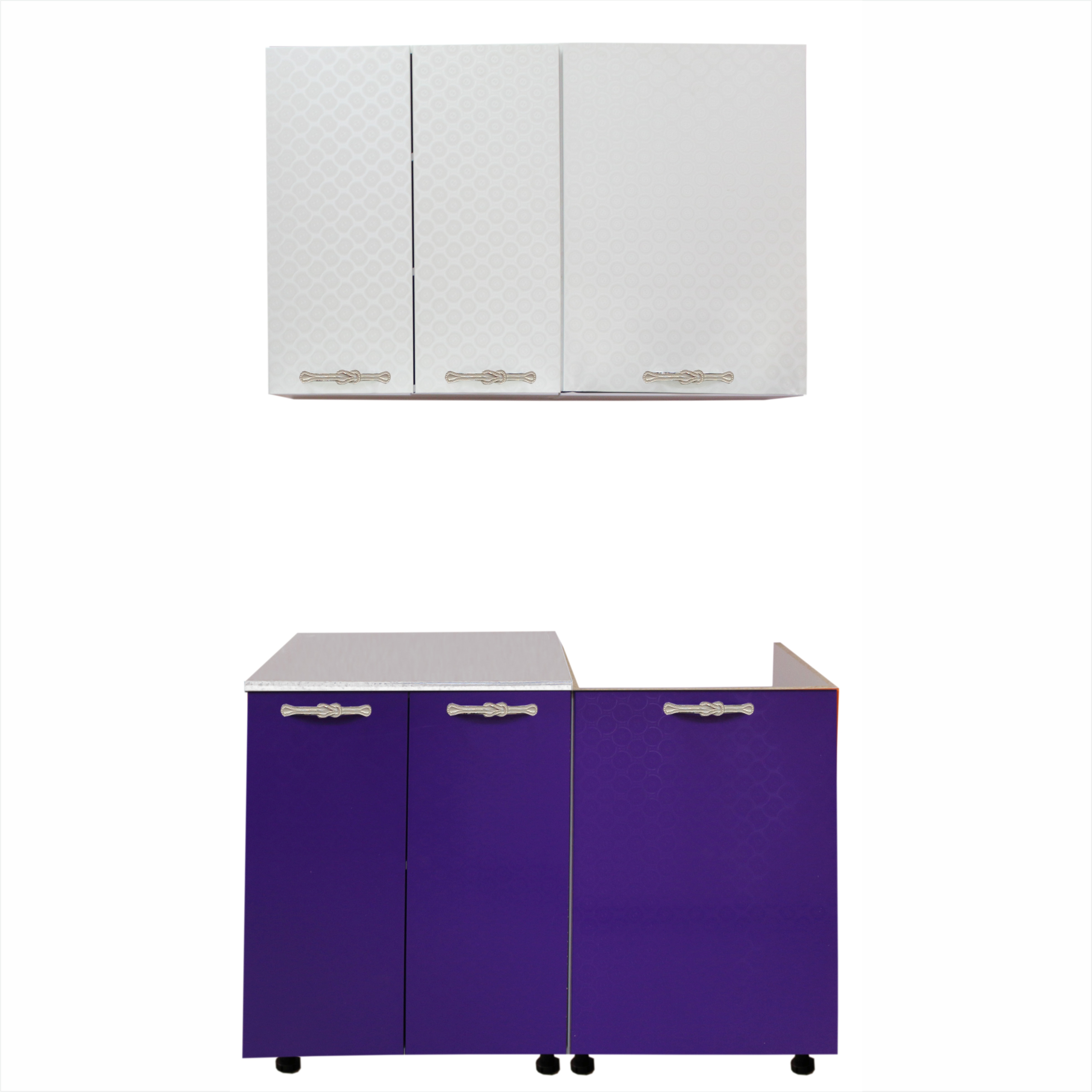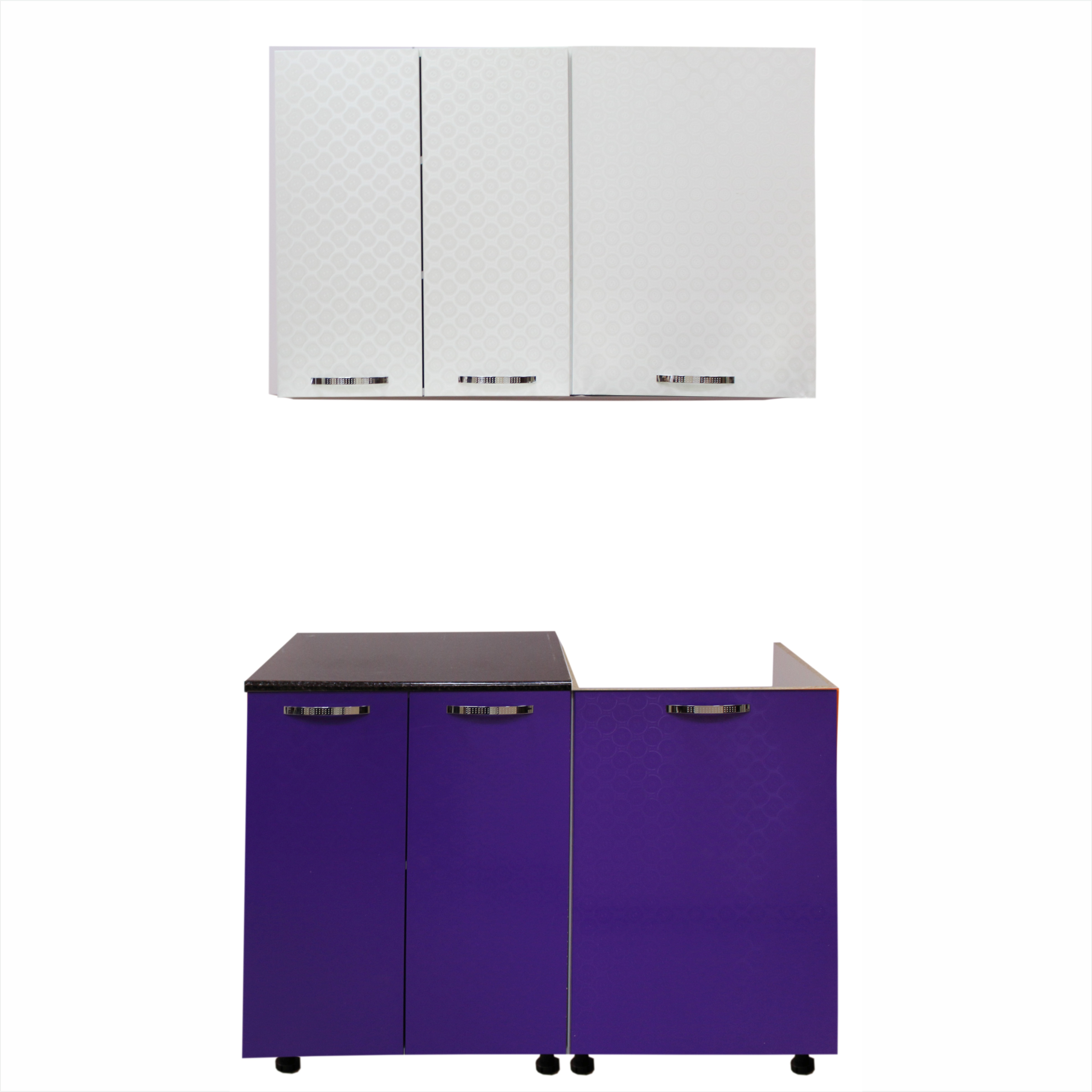 Кухня "Майя" МДФ 1,1 б/м б/с слоновая кость молекулы белые+молекулы фиолетовые
