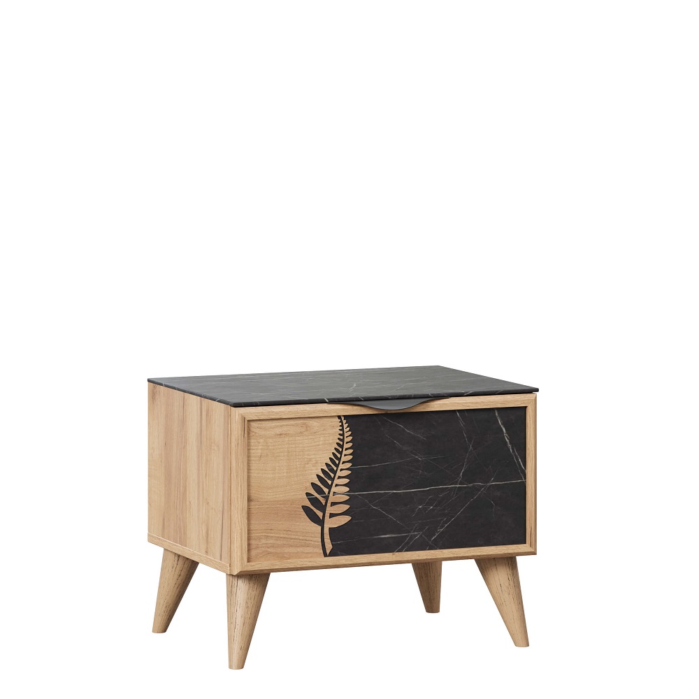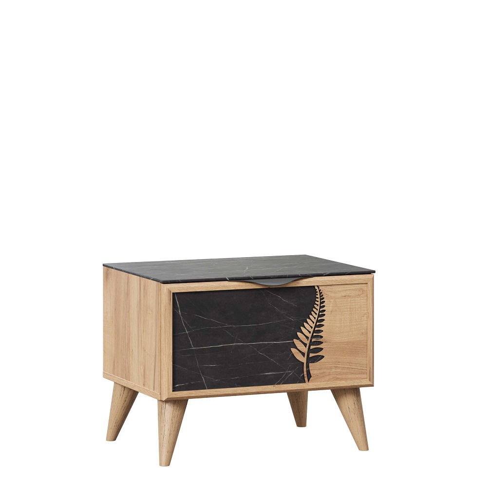 ЛД 692.050.000 СГ "Шелли" Тумба прикроватная левая (Дуб золотой/Камень Пьетра чёрный)