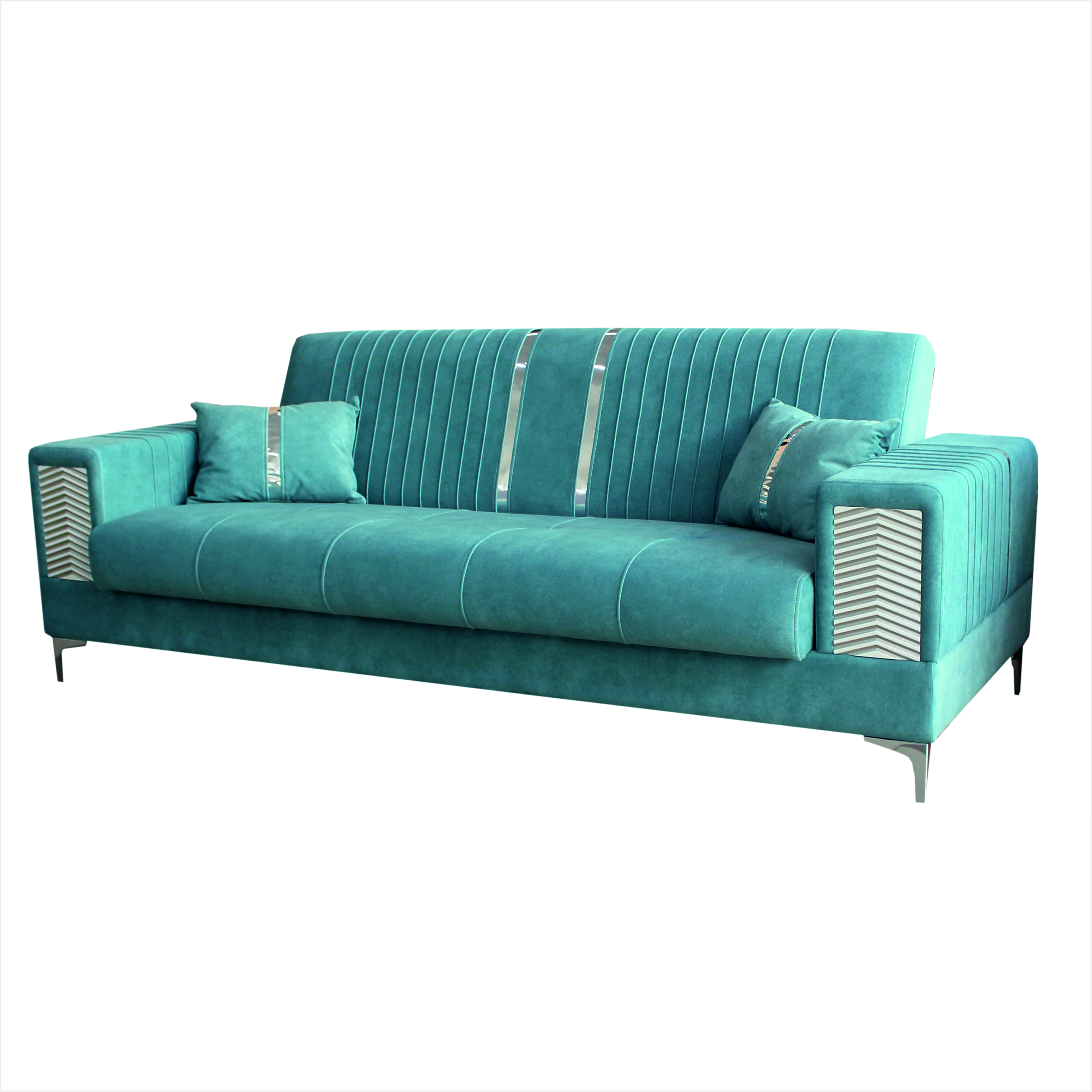 Неординарный, броский и очень уютный. Диван «Жаклин» не останется без внимания, характерные черты, в виде вставок металлизированной ткани и накладок на боковинах, приковывают взгляд. Отлично впишется еще