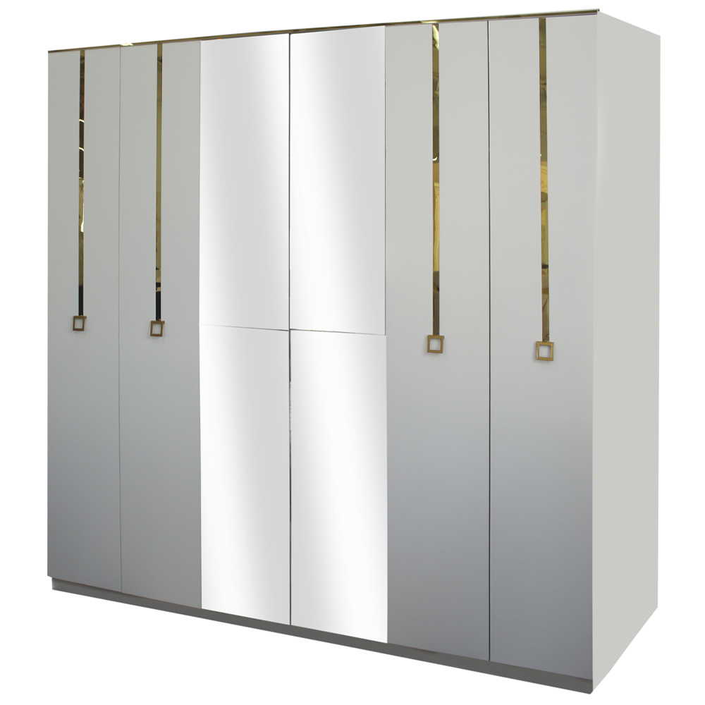 Спальня "Элиф" стол туалетный с зеркалом Материалы: ЛДСП, зеркало Размеры: 1300*470*1720 мм Цвет: белый с золотым молдингом