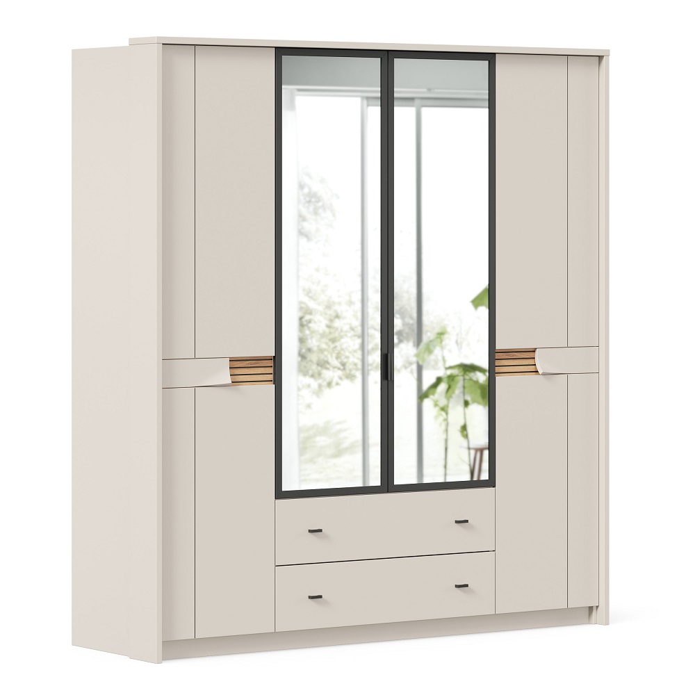 ЛД 423.060.000 "Нильс" Шкаф четырехстворчатый с зеркальными дверями (Кашемир/Дуб Тортуга)