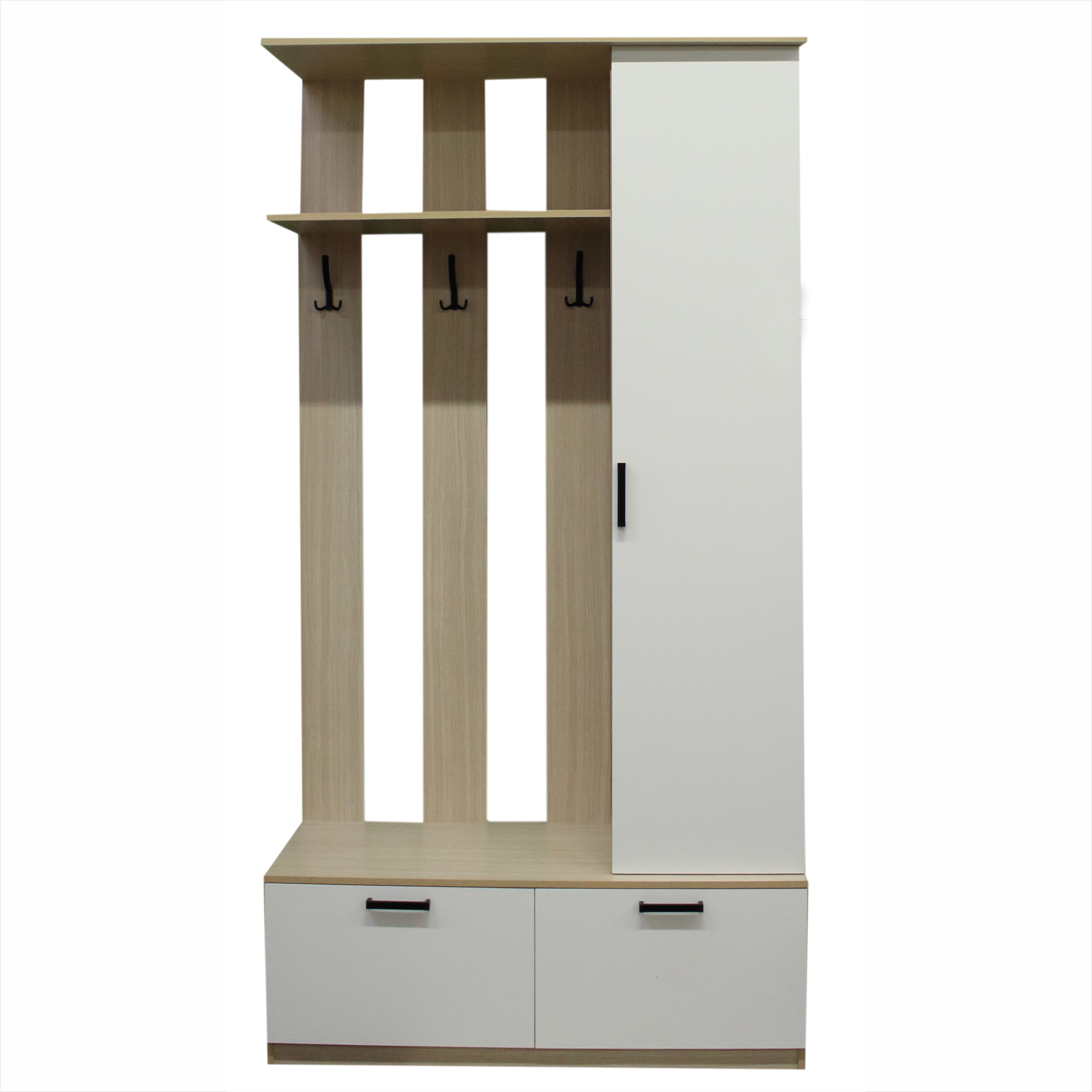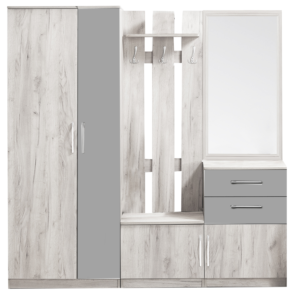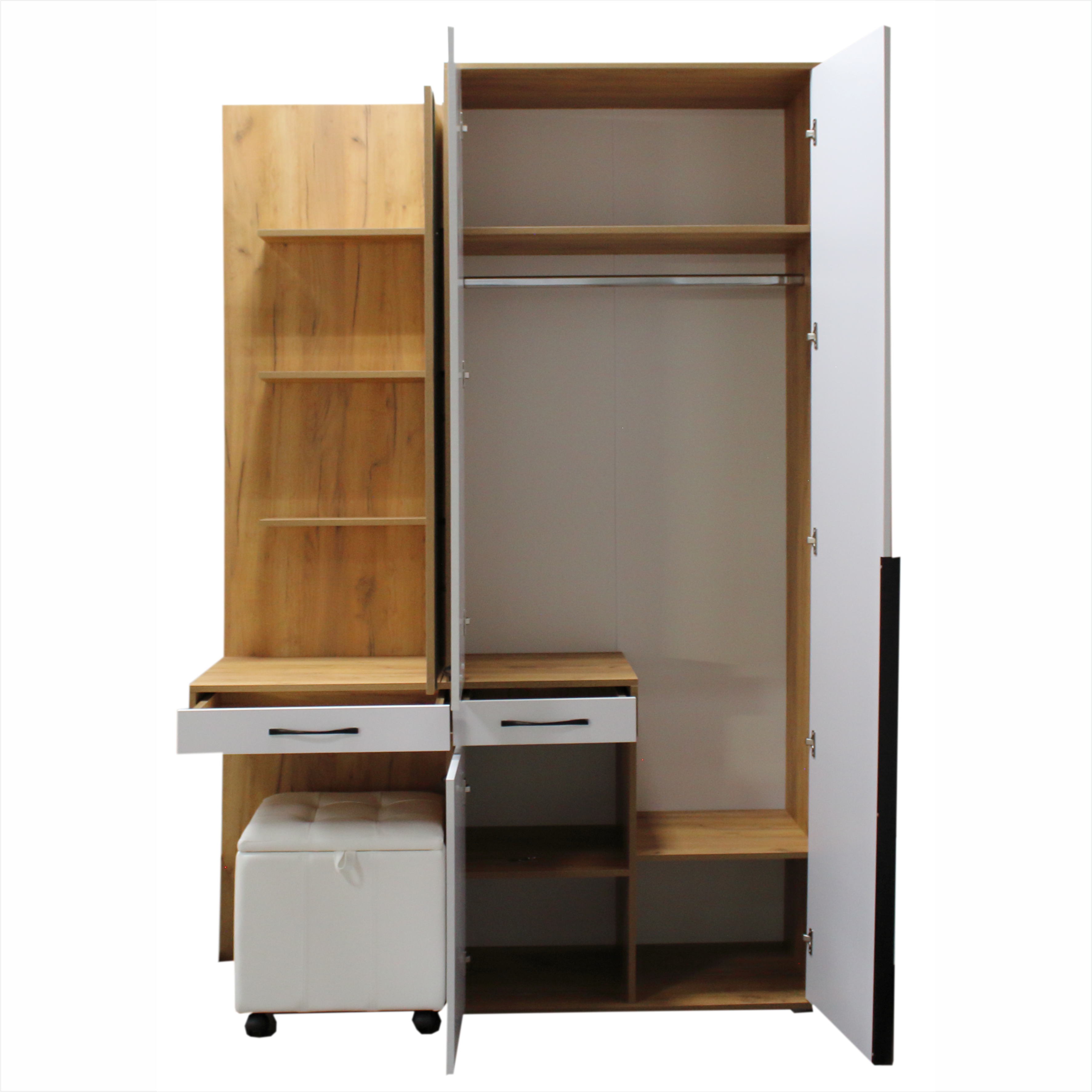Прихожая "Нова" с пуфом 1500*470*2262 дуб крафт золотой+белый глянец